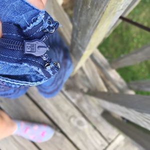 Jean patterned skirt, 100% cotton, the clasp at the top of the zipper is somewhat broken but isn't really necessary to wear