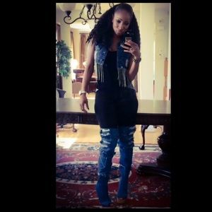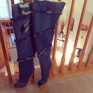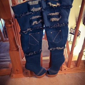 Come check out these sexy jean peep toe stylish boots! Size 8. Never been worn!
