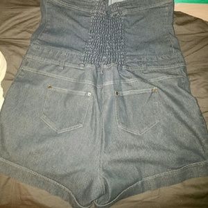 Multi-use romper that you can dress-up or down. The romper is strapless and is a size 18.