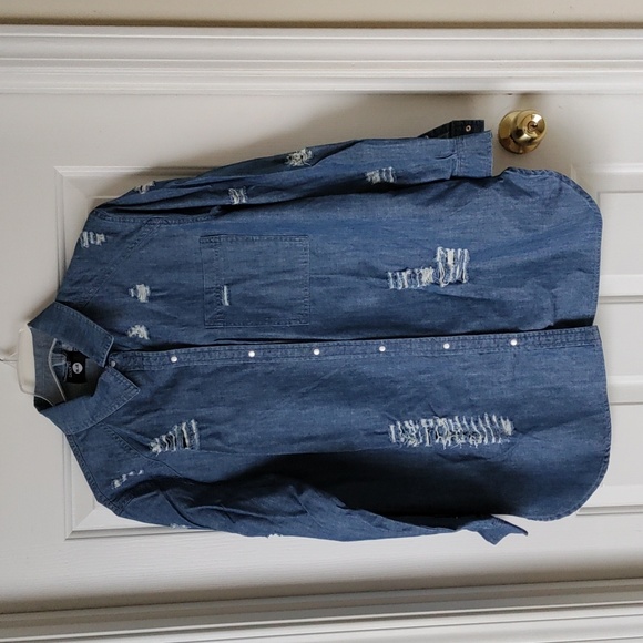 Boohoo jean shirt ripped with Pearl snaps down the front long sleeves size 14 new