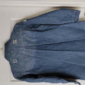 Boohoo blue jean shirt size 14 snaps down the front fringe at the bottom ripped new