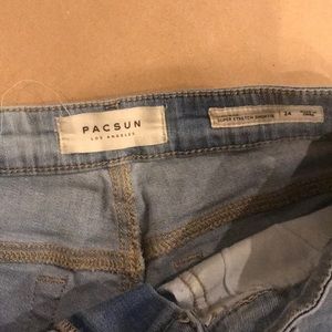 Adorable jean shorts. All different size and brand but fit the same girl. AE size 00, Pacsun size 24, Billabong size 24, and Kendal and Kylie size 25.