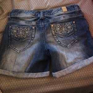 Jean shorts from Maurices! Only worn once. Bottom of shorts end toward the upper thigh. Dark jean with slight acid distressing.