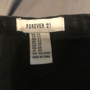 Forever 21 black jean shorts. Zipper is on the side and has one button. Has only been worn once and have no signs of wear. Size 27