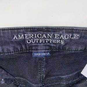 Black American eagle distressed jean shorts