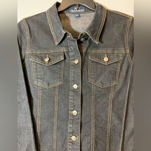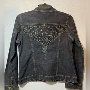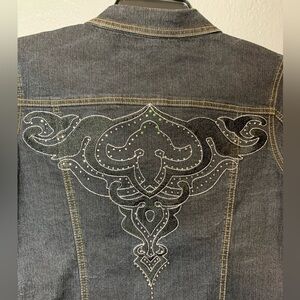 JeanBay Blue Jean Jacket sz Large with embroidered bling design in the back