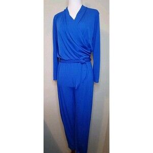 Jean-Louis Scherrer Jumpsuit Sz Small Blue Stretch Wrap Top Tie Belt Jogger Leg