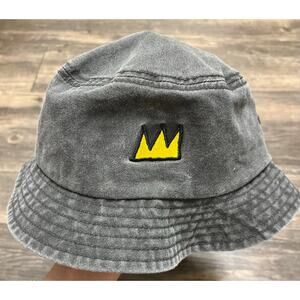 Jean-Michel Basquiat Crown Bucket Hat | Washed Black/Grey | Art Merchandise EUC