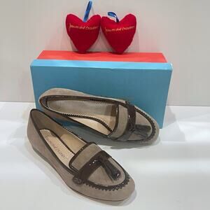 Jean-Michel Cazabat 37 Romaine Flat Loafers Clay Suede Tassel Patent Leather