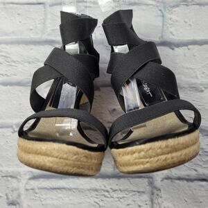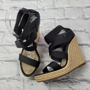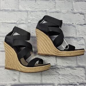 Jean-Michel Cazabat Black Espadrille Wedges with Jute Trim size 39.5