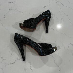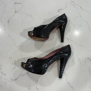 Jean-Michel Cazabat Black-Silver Suede Metalic Pumps Size 8.5 M