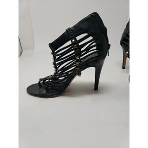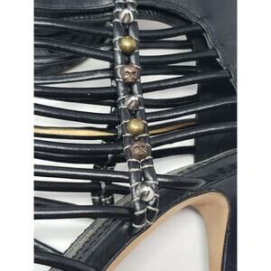 Jean-Michel Cazabat SZ 38/8 Gladiator Heel Black Bronze Leather Gold Rivets Zip