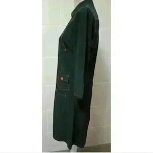 RARE Vintage 90's Gaultier Jeans zip up military midi dress/ utility jacket dress. Fabric feels soft, lightweight material. Dark indigo blue color. Looser than a french size 36. Front zipper closure with orange stiching. 4 front pockets & 2 of the 4 pockets close with copper snap buttons. The sides do have belt hoops (belt not included). ICONIC Gaultier Jeans logo stitched on the back. A statement piece nonetheless. Will hug your curves. Can be worn open or closed. Made in Romania. In pristine condition. Steamed and ready to ship.