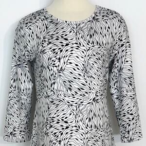 Jean-Pierre Klifa Daphne 3/4 Sleeve Dress White Black Abstract Print M