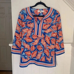 Jean-Pierre Klifa Paris 3/4 Sleeve Colorful Pattern Blouse size Medium