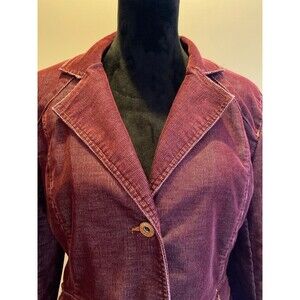 JeanStar Corduroy Jacket Sz Medium Burgundy Fitted Detailed Distressed Stylish