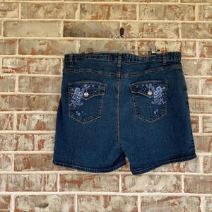 Jeanbay Medium Wash Denim Embroidered Floral Flap Pockets