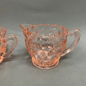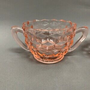 Jeanette Cube Depression Glass Pink Clear Creamer Mini Open Sugar Bowl