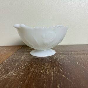 Jeanette Glass Vintage Milk Glass Iris Floral Herringbone pedestal Compote dish