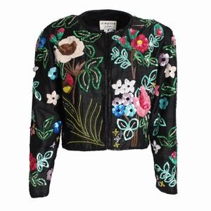 Jeanette Kastenberg St Martin Jacket Embellished Floral Sequins Vintage 80s L