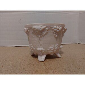 Jeanette Shell Pink Milk Glass Footed Sugar Bowl Grape Pattern 4 1/4" x 3 1/2"