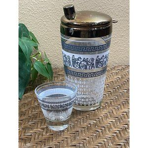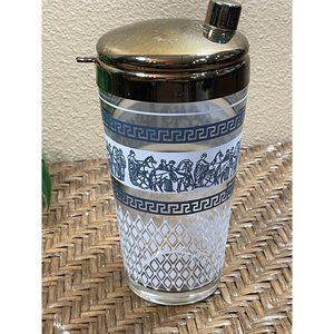 Jeanette Vintage Roman Chariot Horse Glass Drink Shaker and 1 Shot Glass 48 OZ