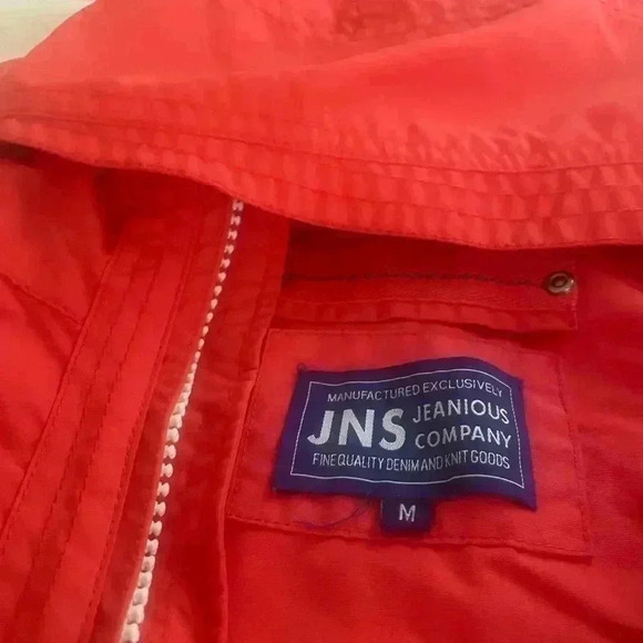 Jeanious Y2K Vintage Hooded Jacket Size Medium Dark Orange Racing Stripe Patched