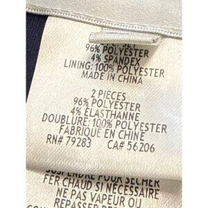 This Jeanne Alexander women's gown in navy blue offers a chic and formal look. The sleeveless dress features a flattering ruched drape detail, an elegant scooped neckline embellished with rhinestones, and includes a matching bolero jacket with 3/4 sleeves and coordinating rhinestone trim. Crafted from polyester, this ensemble is designed for evening wear, weddings, or special occasions. Both pieces are in excellent, like-new condition with no flaws.