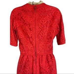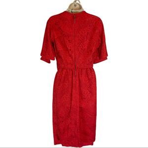 Jeanne D’Arc Vintage 50's Short Sleeve Red Lace Sheath Dress Size 4