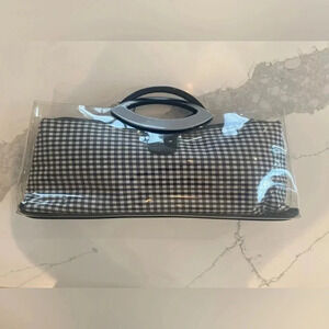 Jeanne Lottie Transparent Two Piece Clutch Stadium Bag Black/White Gingham EUC