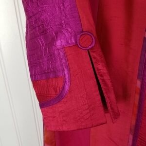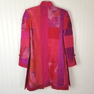 Jeanne Marc Vtg 80s Multi Color Patch Duster Jacket Kimono Size XS 4/6 Pink Red