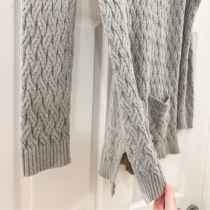 Jeanne Pierre Cable Knit Fisherman Tunic Sweater in gray. Labeled a size large, but it fits like a small, so listing the size according to the actual fit because it won’t fit a large. I wear a small and it fits me well. Great condition.
