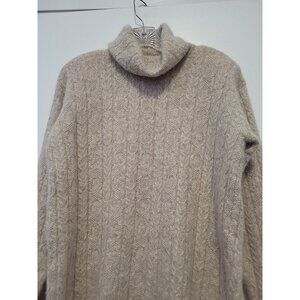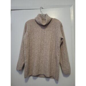 Jeanne Pierre Cable Knit Sweater Lambs Wool Angora Turtleneck Oatmeal Small