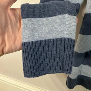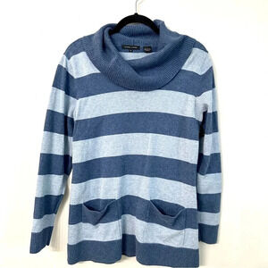 Jeanne Pierre Cowl Neck Striped Front Pocket Long Sleeve Blue Sweater Sz M