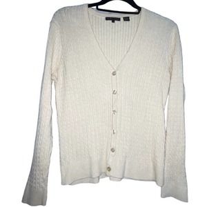 Jeanne Pierre Cream Argyle Cardigan XL | 100% Cotton V-Neck Sweater