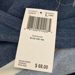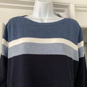 Jeanne Pierre Navy Slate Blue Striped Long Sleeve Pullover Sweater Large New wit
