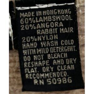 • 60% lambswool, 20% angora, 20% nylon for warmth and softness