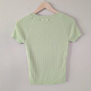 Jeanne Pierre Pistachio Green Short Sleeve Cable Knit Sweater Preppy Twee Size S