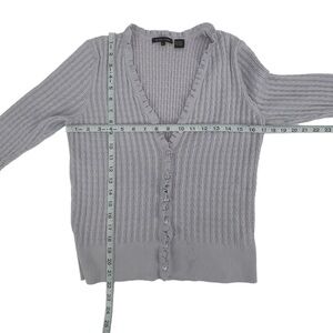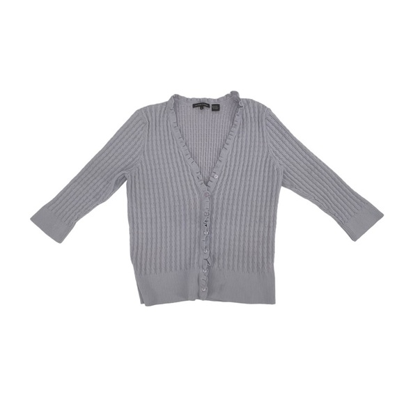 Jeanne Pierre Purple Ruffle Button Up 3/4 Sleeve Sweater Size Large Women’s