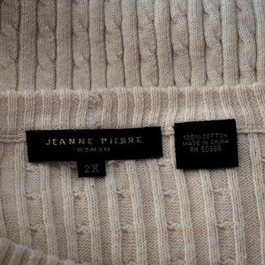Selling my beautiful Jeanne Pierre sweater top. It is 100% cotton, so it's warm yet breathable. Excellent used condition, any spots you see are from the wrinkle release I just sprayed on it before I took pictures. Purchased for $40, selling for $30 or best offer! If you'd like any more pictures, just let me know.