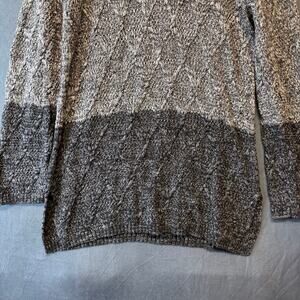 Title: Jeanne Pierre Sweater Fisherman Tunic Colorblock Cable Knit Cowl Neck Preppy LG