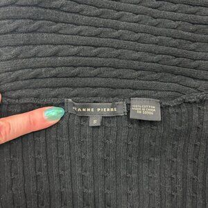 Jeanne Pierre Sweater Women's Small Black Cable Knit Shawl Collar Cotton Pullover