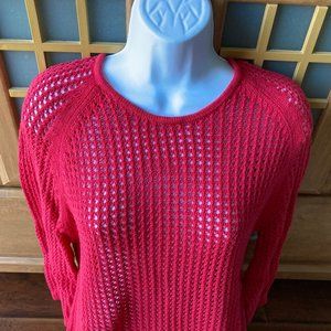 Jeanne Pierre Tomato Red Open Weave 3/4 Sleeve Sweater X Large