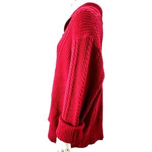 Jeanne Pierre Woman 2X Red Cotton Cable Knit Sweater Shawl Collar Cozy Citycore