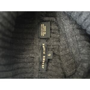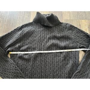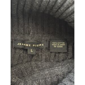 This is a Jeanne Pierre women's turtleneck sweater featuring a classic cable knit design. It is made from a soft, warm cotton, perfect for cooler season. It is a size large and in excellent used condition.