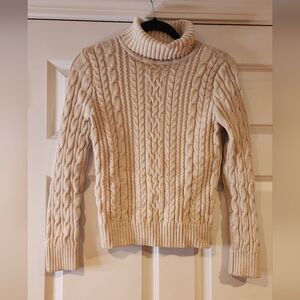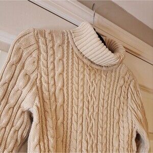 Jeanne Pierre stretchy cotton knit cream turtleneck sweater S