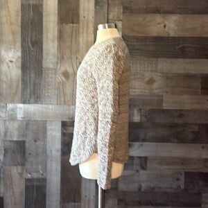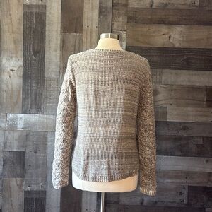 This Jeanne Pierre sweater is cream and gray with a cable knit design in front and striped knit in the back. The materials tag was cut out. It is gently worn and is in excellent condition!