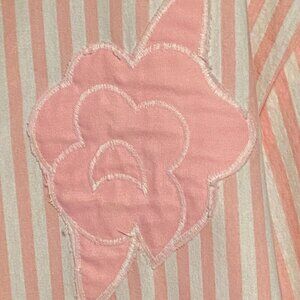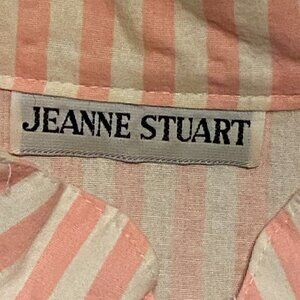 Jeanne Stuart Pink & White Striped Shirt Zipped front Rose Applique Approx (L)