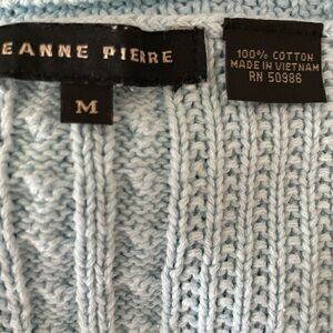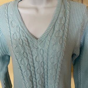 Beautiful blue v-neck cable knit sweater, size medium. Excellent preowned condition! Very thick and warm!