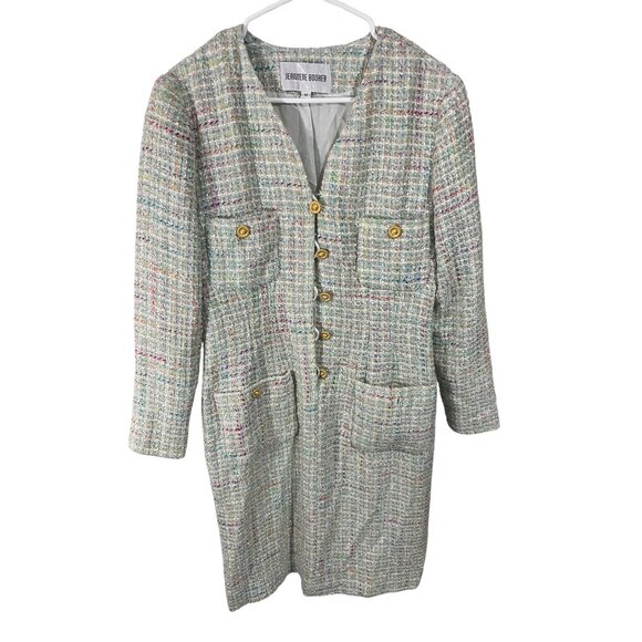 Jeannene Booher Multicolor Tweed Jacket Dress W/ Gold Buttons